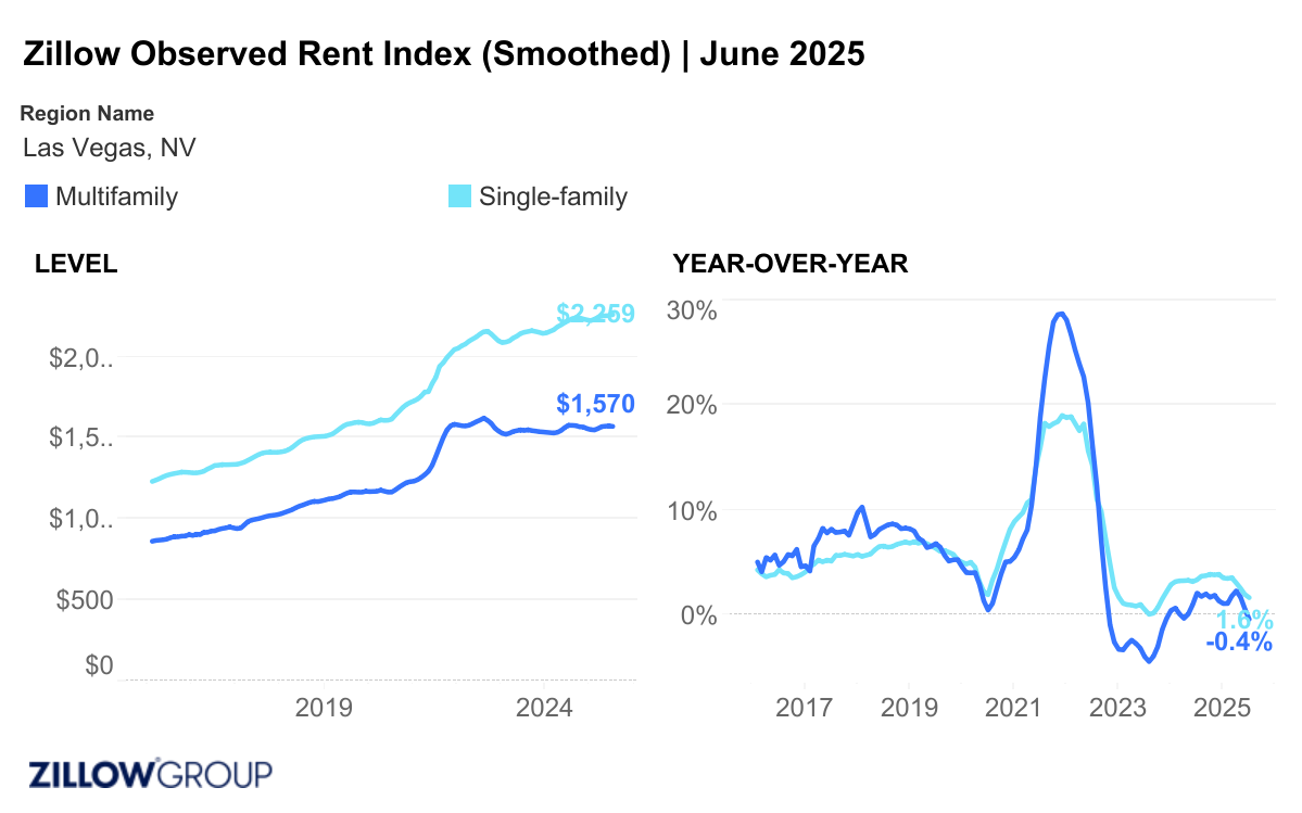 Rental activity and trends for the Las Vegas Metro area as reported by Zillow Research – June 2025