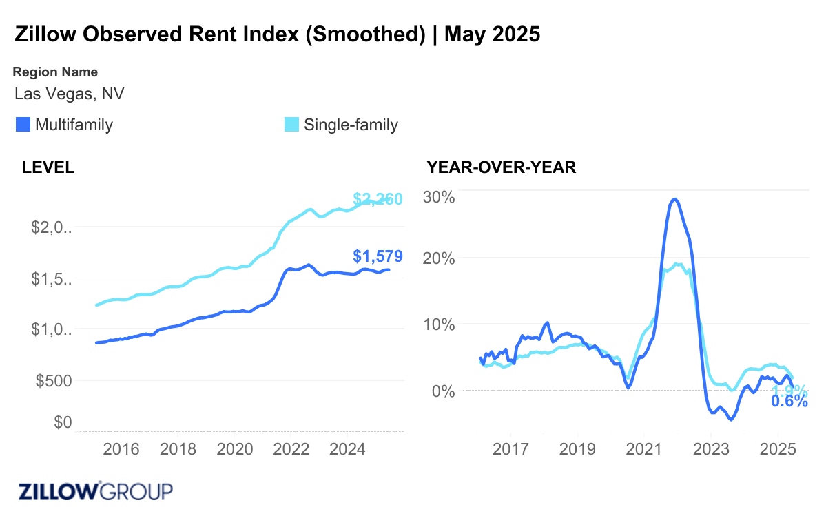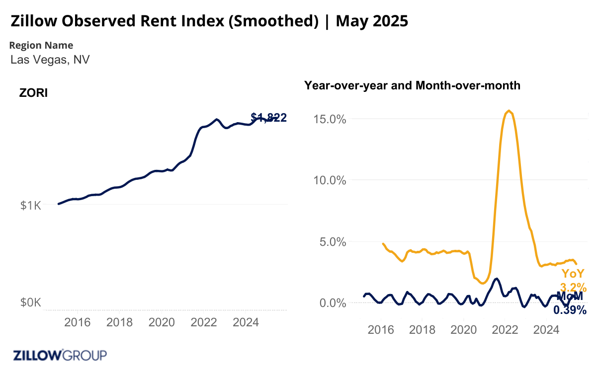 Rental activity and trends for the Las Vegas Metro area as reported by Zillow Research – May 2025