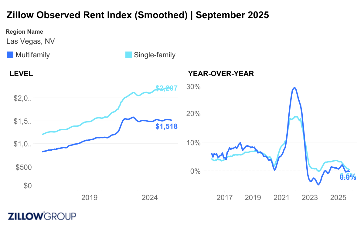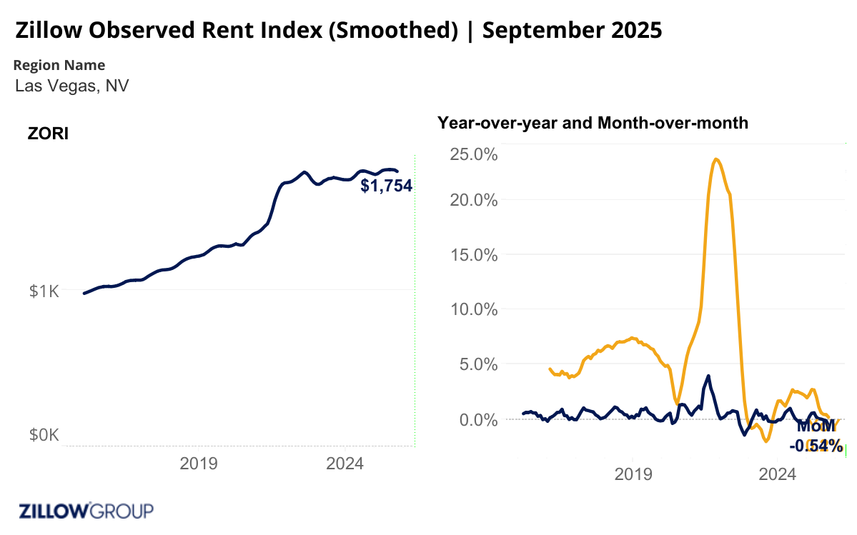Rental activity and trends for the Las Vegas Metro area as reported by Zillow Research – September 2025